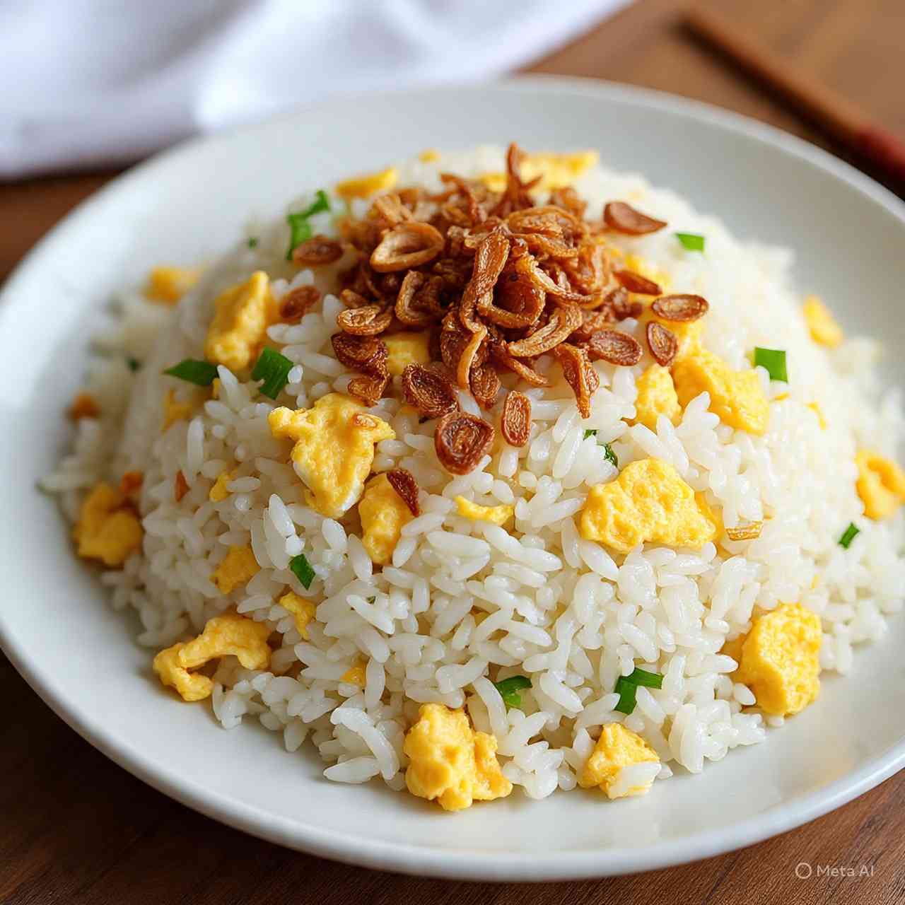 Sedangkan untuk menu harian sepanjang masa jatuh kepada nasi goreng mentega (nasi goreng putih) yang kemudian menjadi menu andalan yang bisa aku praktikan saat mulai ngekos di zaman kuliah dulu. Nasi goreng putih adalah nasi goreng tanpa kecap manis dimasak menggunakan mentega dengan bawang putih yang dicincang halus hingga dari wanginya saja sudah menggoda. Lalu diberi telur yang diorak-arik asal, dengan bumbu hanya garam dan lada bubuk saja lalu ditaburi bawang merah goreng. Sesederhana itu. Tapi setiap Mbah Uti masak menu tersebut, hampir tidak pernah tidak nambah. Menu yang sering hadir untuk sarapan sejak aku mulai sekolah hingga akhir hayat Mbah Uti di saat aku kelas tiga sekolah menengah atas.